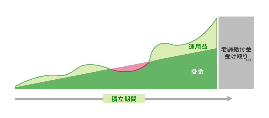 ※投資信託等の価格変動商品で運用を行った場合、残高が掛金総額を下回る場合があります。